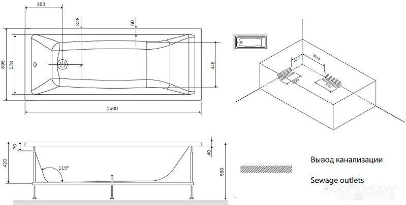 Глубина ванны: 42 см