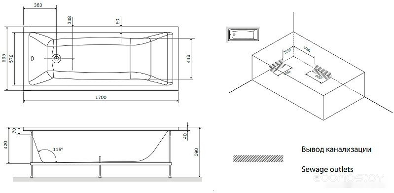 Глубина ванны: 42 см