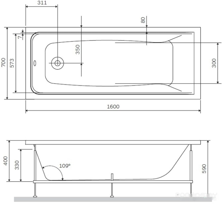 Глубина ванны: 40 см