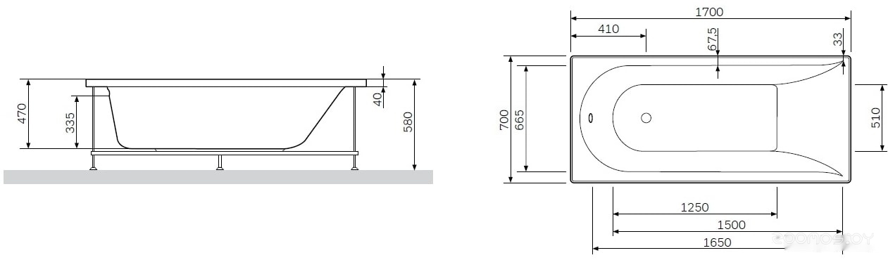Глубина ванны: 47 см
