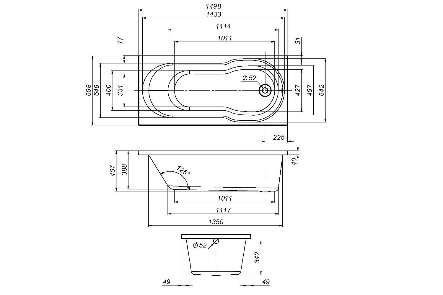 Глубина ванны, см