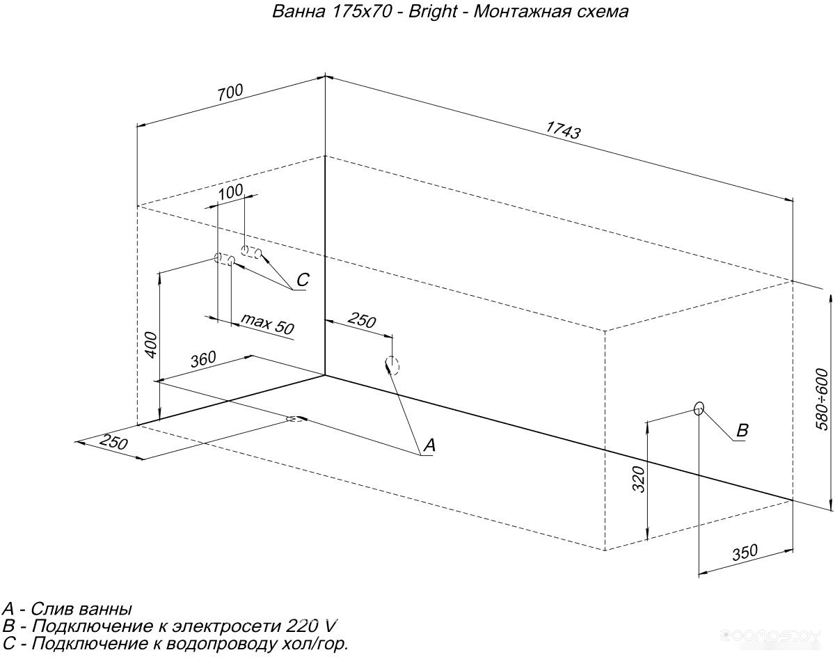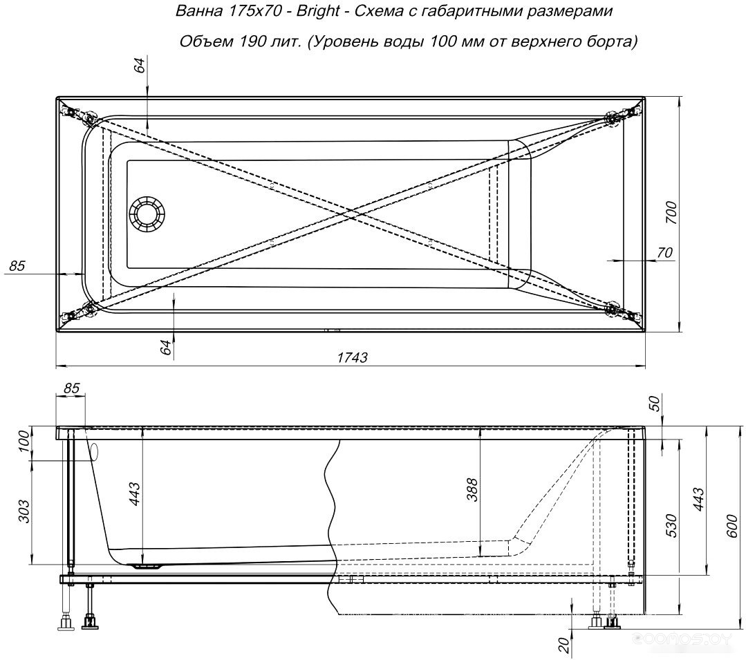 Ванна Aquanet Bright 175x70 00273795 (с каркасом)