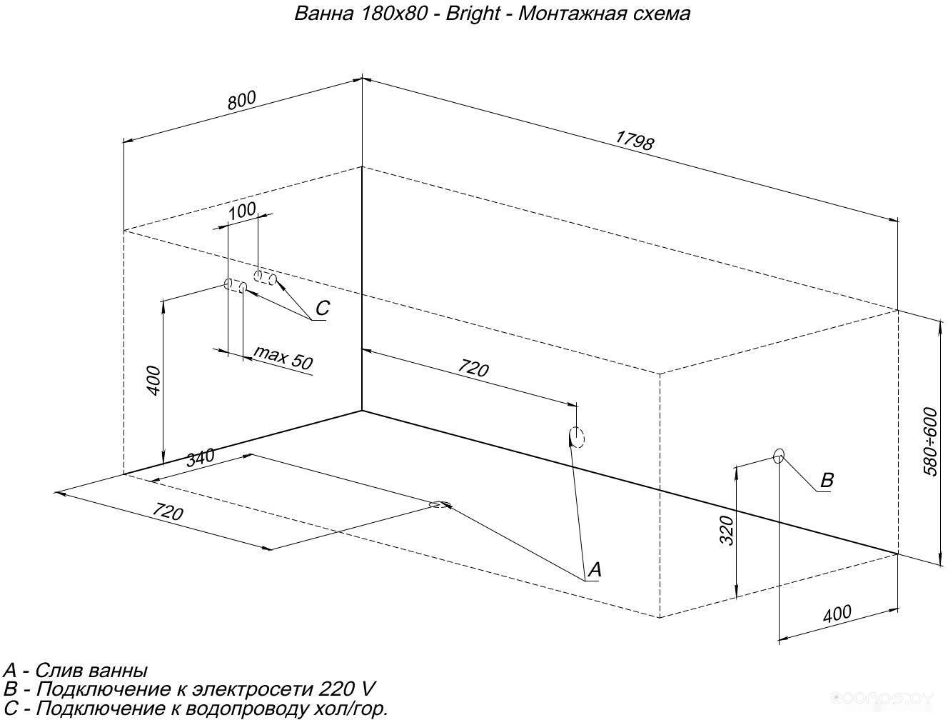 Ванна Aquanet Bright 180x80 (с каркасом и экраном)