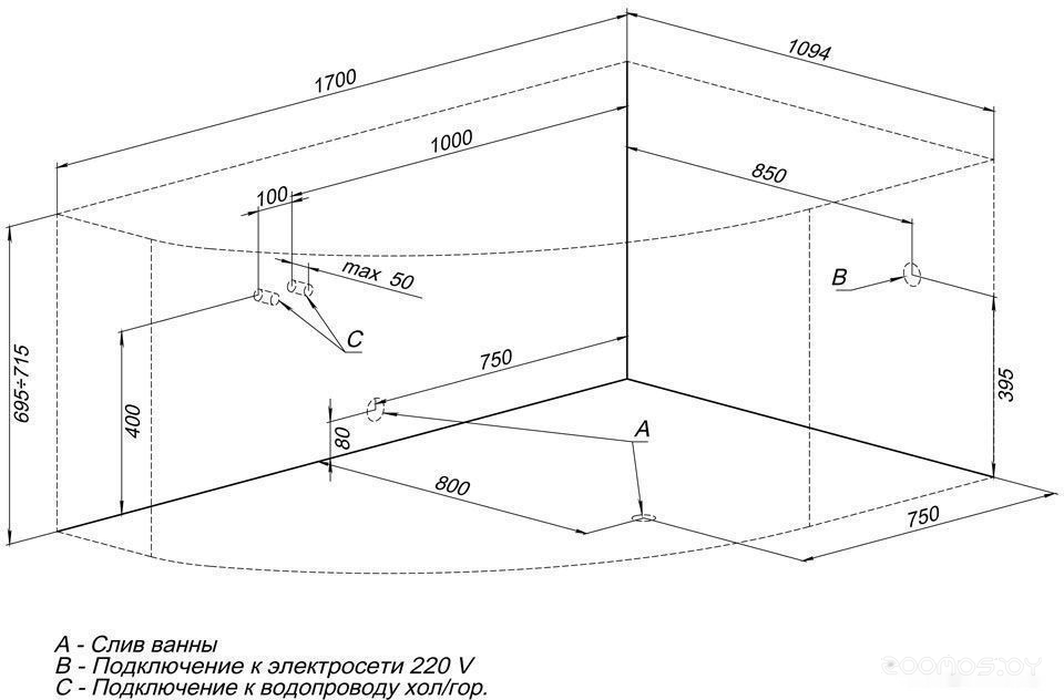 Глубина ванны: 51.9 см