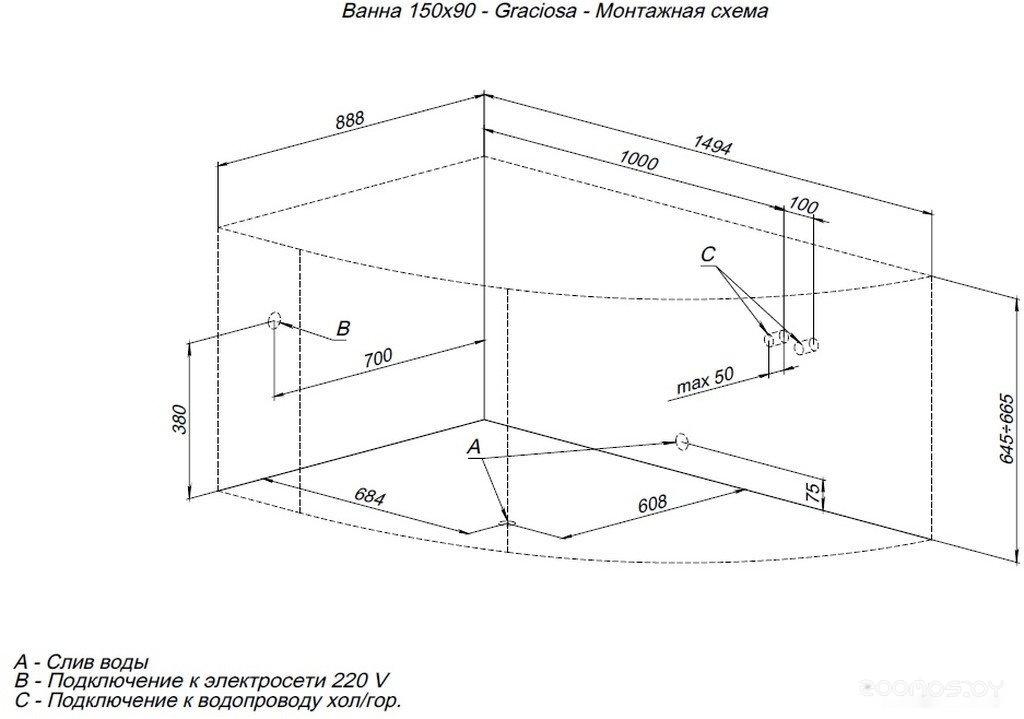 Ванна Aquanet Graciosa 150x90 L (с каркасом)