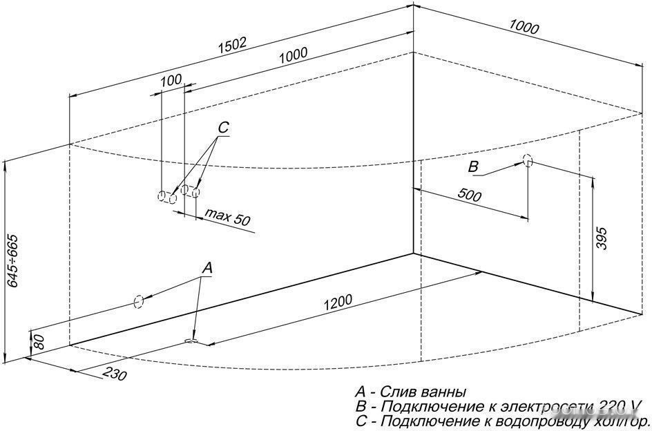 Глубина ванны: 50.5 см