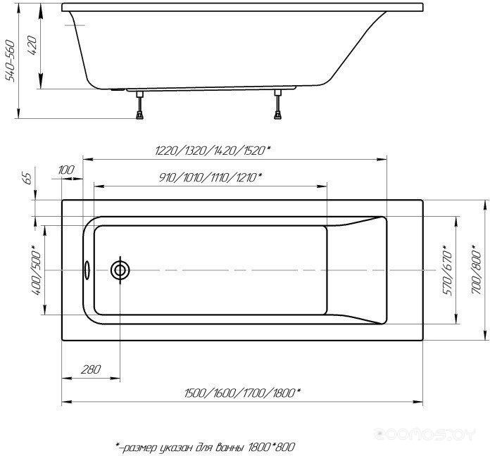 Глубина ванны: 42 см