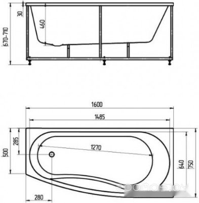 Глубина ванны: 46 см