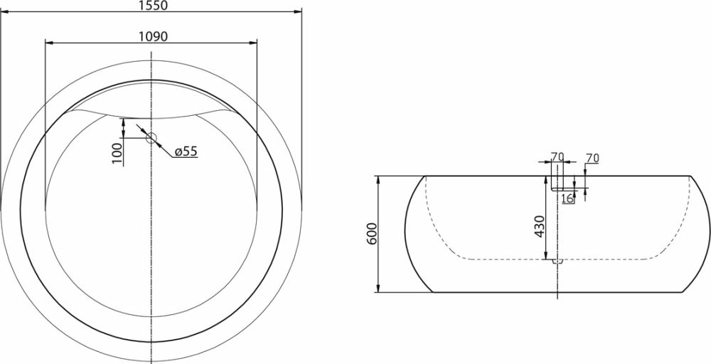 Ванна BelBagno BB30 — это смелый выход за рамки привычных форм. Её круглая конструкция диаметром 155 см — это не просто дизайнерский ход, а создание принципиально иного пространства для отдыха. Такая форма идеально подходит для общения, романтического вечера или просто для того, чтобы насладиться необычными ощущениями от купания в просторной «чаше».
