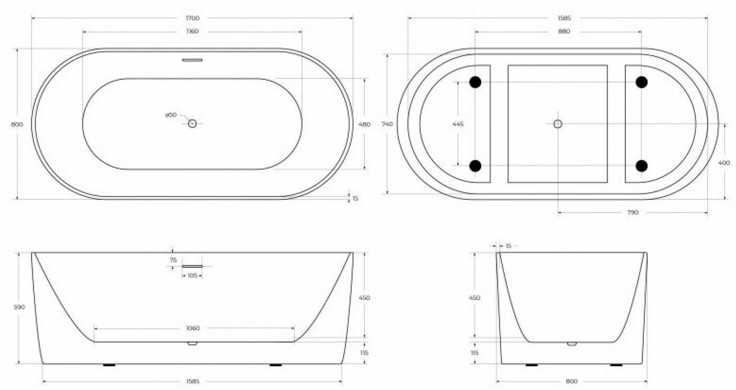 Иногда лучшее — это проверенная временем классика. BelBagno BB411 возвращает нас к истокам комфорта: элегантная овальная форма, оптимальные размеры 170x80 см и глубина 47 см. Эта ванна создана для тех, кто ценит традиции удобства и расслабляющую атмосферу, которую дарит именно такая плавная, обтекаемая форма.
