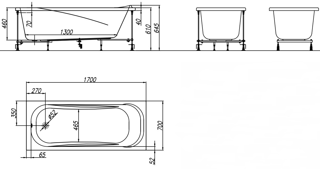 Широкий выбор размеров для точного соответствия. Модель представлена в шести размерах (от компактных 150x70 см до просторных 190x90 см), что позволяет идеально вписать её как в небольшую семейную, так и в просторную гостевую ванную комнату.