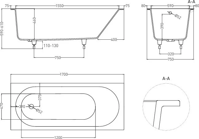 Ванна LoveForm Lofo 170x75 Gelcoat UM12212 (белый глянцевый)