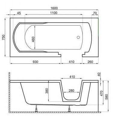 Глубина ванны: 47 см