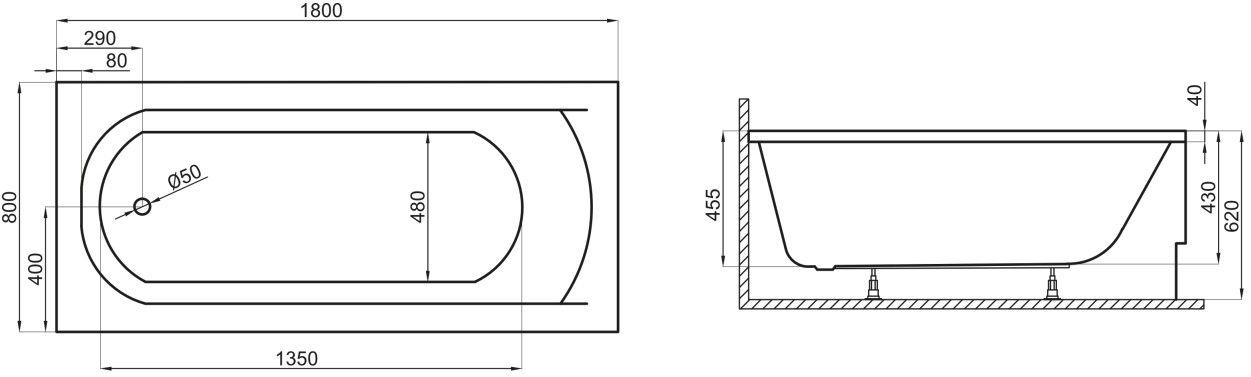 Полная комплектация: Ванна поставляется в комплекте с опорами (ножками), что избавляет от необходимости дополнительных покупок и упрощает монтаж.