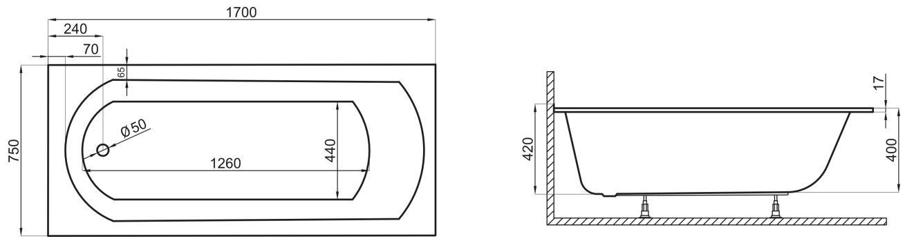 Пять размерных вариантов: Широкий выбор размеров от 150x70 см до 180x80 см для оптимального подбора под габариты вашей ванной комнаты.