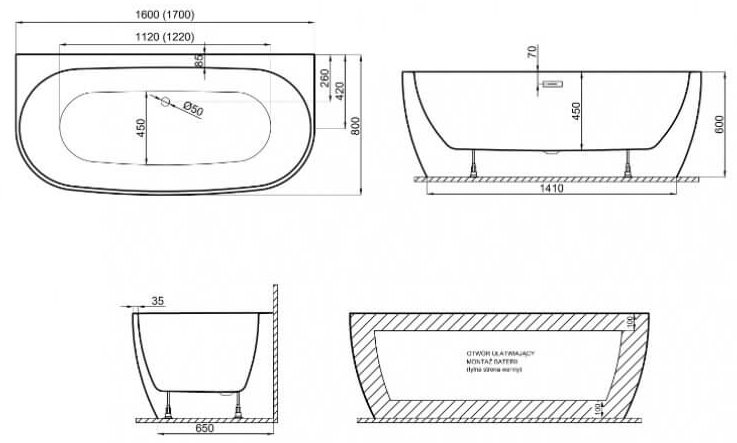 Полная комплектация: В отличие от многих моделей, ванна поставляется с ножками в комплекте, что упрощает и удешевляет процесс монтажа.