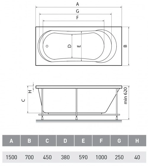 Relisan Daria — это решение для помещений с ограниченным пространством, где требуется установить полноценную ванну. При длине 150 см и стандартной ширине 70 см модель занимает минимум места, но благодаря глубине 45 см обеспечивает полезный объём 170 литров, достаточный для комфортного приёма водных процедур.