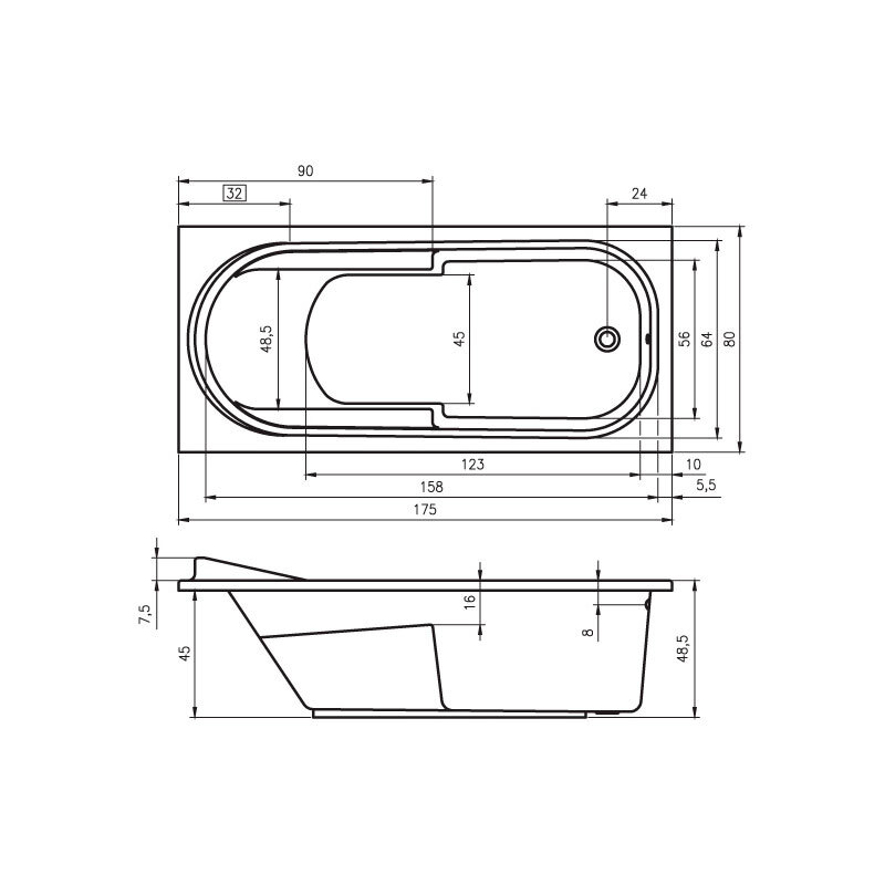Широкий выбор размеров для разных помещений. Модель представлена в четырёх типоразмерах — от компактных 140x70 см до более просторных 175x80 см, что позволяет подобрать идеальный вариант как для небольших, так и для стандартных ванных комнат.