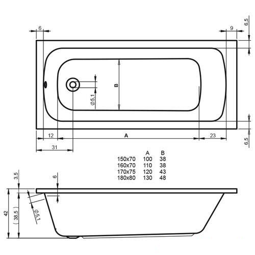 Глубина ванны: 42 см