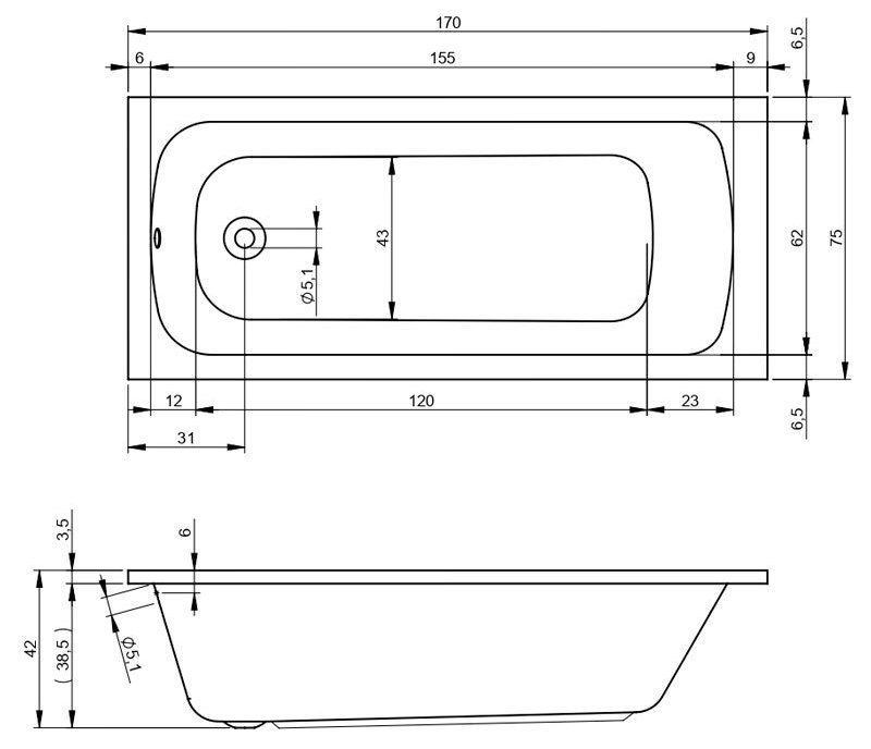 Глубина ванны: 42 см