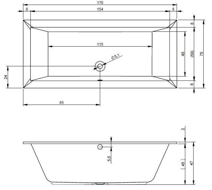 Глубина ванны: 46 см