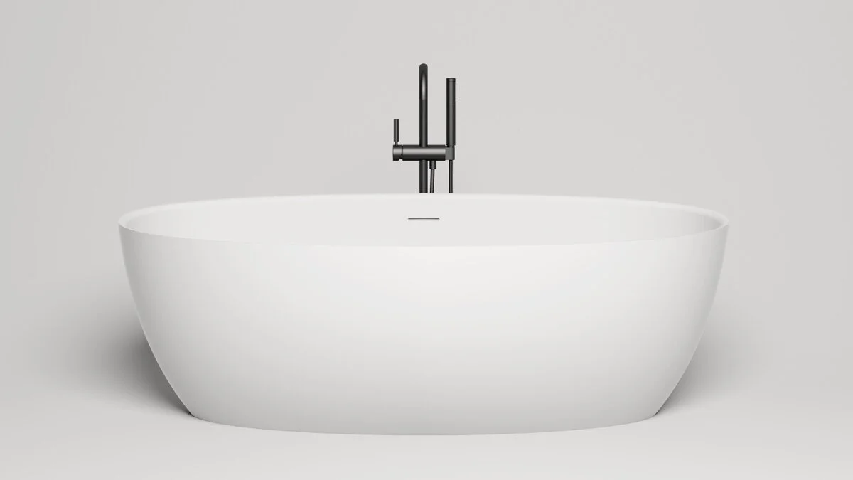 Эта модель изготовлена из высокотехнологичного материала S-Stone — композита на основе натуральных минералов и смол. Поверхность ванны — благородная матовая, с бархатистой текстурой, приятной на ощупь. Главное преимущество S-Stone — его монолитность и ремонтопригодность: материал однороден по всей толщине, что обеспечивает исключительную прочность, а в случае редких повреждений поверхность можно восстановить.