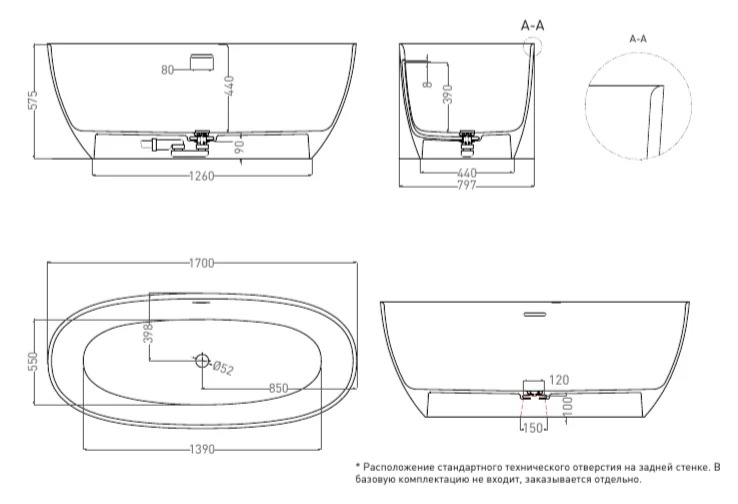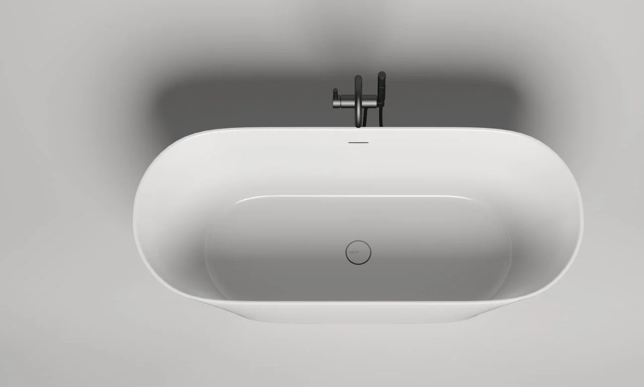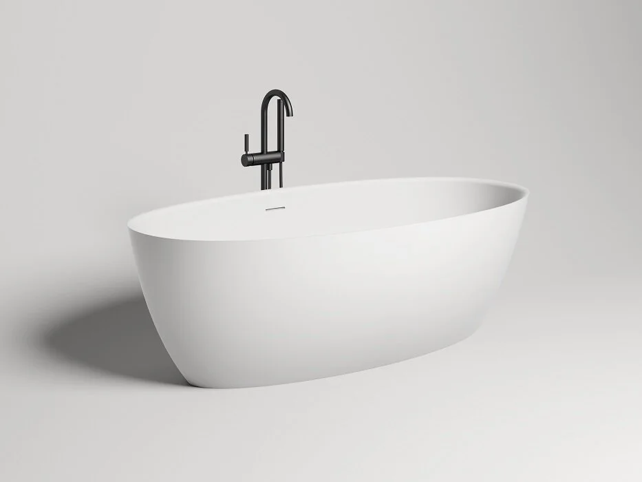 Премиальный материал и дизайн: Монолитный материал S-Stone ударопрочен и ремонтопригоден. Как отдельностоящая модель, ванна не требует установки декоративных экранов и сама по себе является акцентным элементом дизайна.