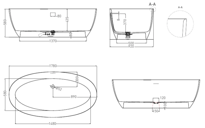 Максимальный размер и комфорт: Габариты 178x92 см создают ощущение личного бассейна. Это идеальное решение для просторных ванных комнат в домах и апартаментах премиум-класса, где комфорт стоит на первом месте.
