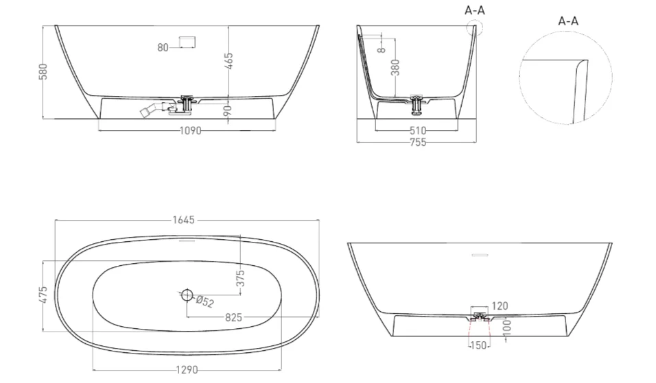 Идеальные пропорции и компактность: Размер 165x75 см — золотая середина, которая обеспечивает комфорт, но не «съедает» пространство ванной комнаты. Это универсальное решение для большинства планировок.
