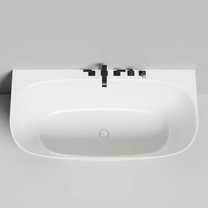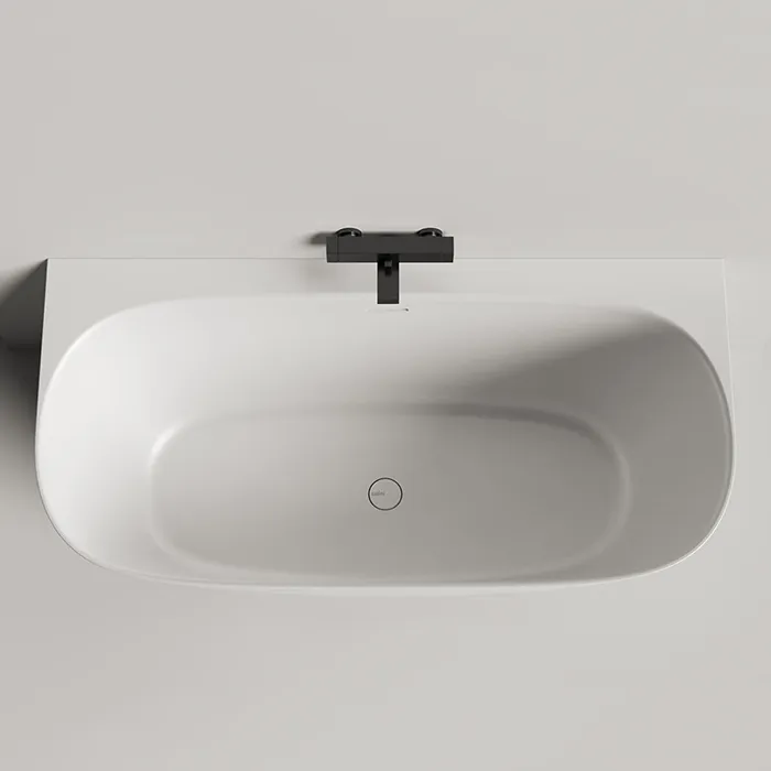 Изделие изготовлено из премиального материала S-Stone, который обладает монолитной структурой, ударопрочностью и благородной матовой поверхностью, приятной на ощупь. Широкий плоский борт — не просто дизайнерская деталь, а удобная полка для косметики, свечей или бокала.