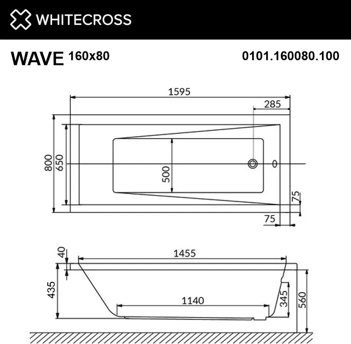 Модель Whitecross Wave — это пример того, как европейский бренд (Португалия) адаптирует классическую акриловую ванну под нестандартные запросы. При уменьшенной длине 160 см она предлагает увеличенную ширину 80 см, что делает её интересным вариантом для помещений, где важна свобода по горизонтали, но длина ниши ограничена.