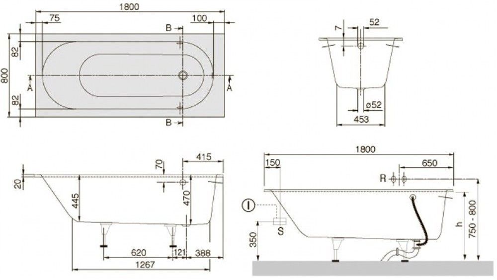 Удобство установки и универсальность. Представленная в четырёх классических размерах (от 160x75 см до 180x80 см), модель легко подбирается под параметры помещения. Конструкция позволяет установить переливную систему в трёх разных местах, что упрощает планирование коммуникаций.