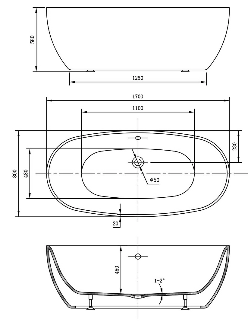 Эта овальная отдельностоящая модель — универсальный ответ на самый частый вопрос при выборе ванны. Её чистые линии и отсутствие видимых стыков создают современный облик, который впишется в большинство современных интерьеров, от скандинавского до минимализма. При этом она представлена в трёх размерах, что позволяет легко подобрать идеальный вариант под ваше пространство.
