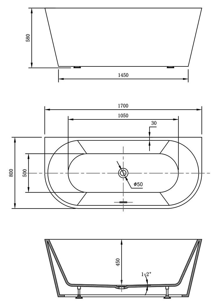 Это пристенная модель, созданная для тех, кто предпочитает надёжные и проверенные решения. Её классическая овальная форма легко интегрируется в большинство интерьеров, а установка у стены обеспечивает аккуратный вид, экономию пространства и удобный доступ к коммуникациям. Модель представлена в двух размерах (170x80 см и 180x80 см), что позволяет выбрать оптимальный вариант, сохраняя при этом комфортную постоянную ширину.