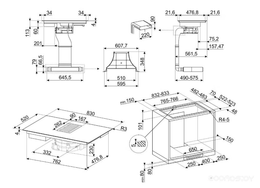 Ширина для встраивания: 76.6 см