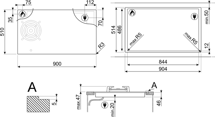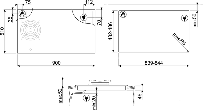 Конфорок с овальной/прямоугольной зоной нагрева: 2