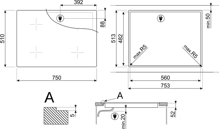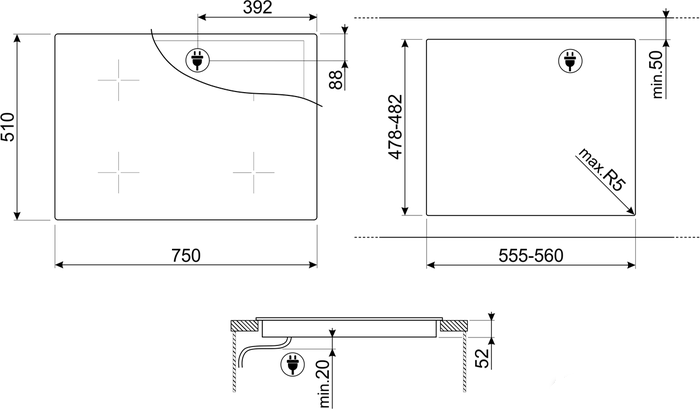 Ширина для встраивания: 55.5 см