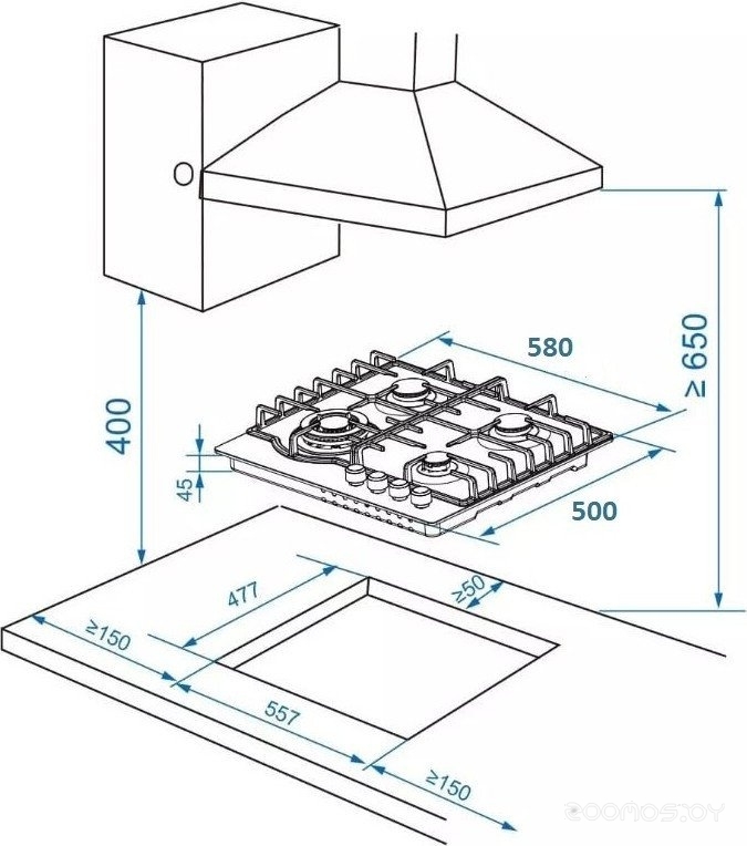 Ширина для встраивания: 55.7 см